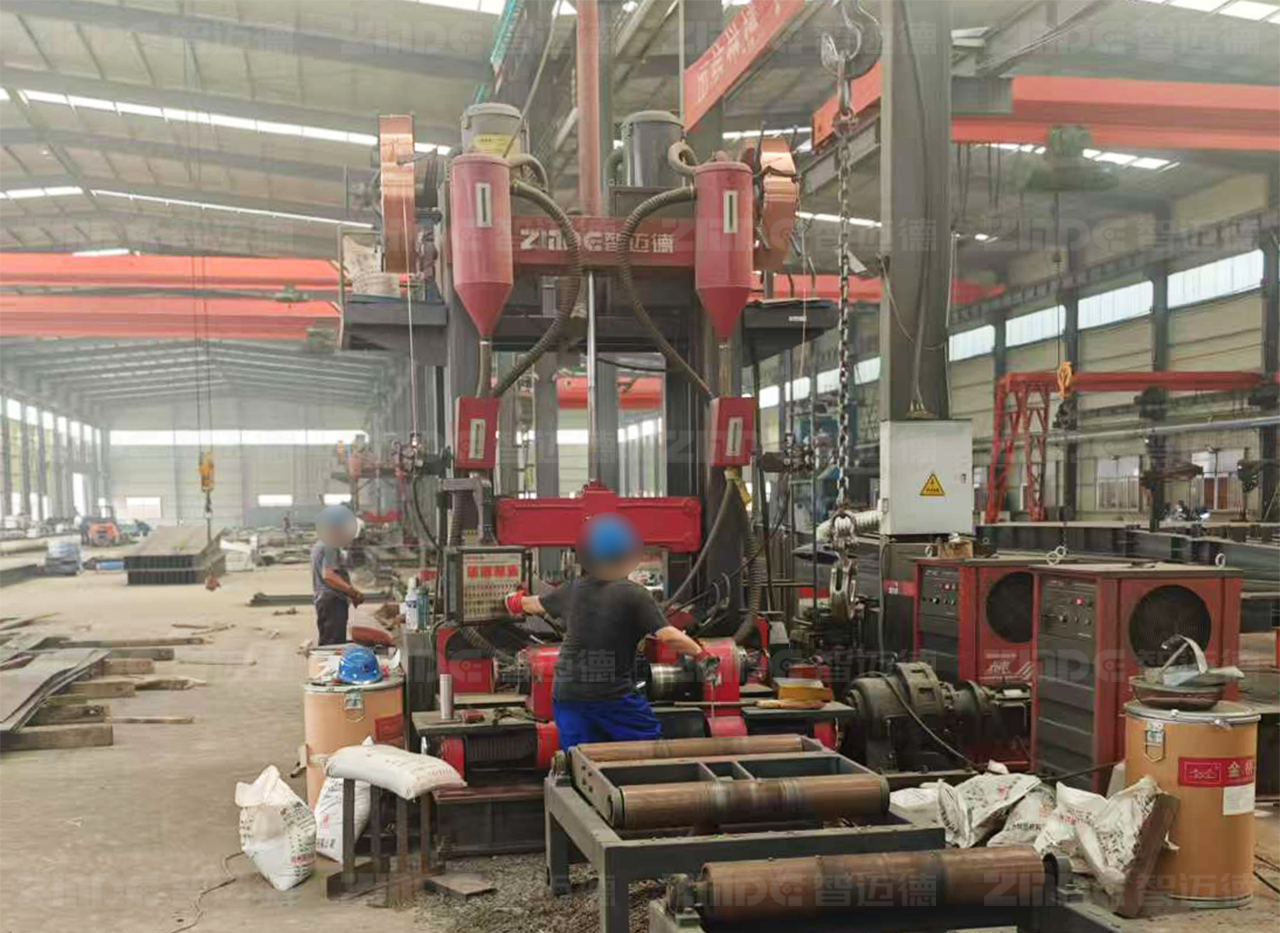主動求變迎轉機,組焊矯一體機成關鍵組立、焊接、矯正是鋼結構加工的三道關鍵程序,也是趙總的鋼構廠亟待提升的環節。傳統的生產設備和工藝難以滿足市場的需求,此時一款集成了組立、焊接、矯正三道工序的新型設備進入了趙總的視野,這就是組焊矯一體機。趙總帶領技術團隊走訪調研了多家生產該設備的廠家,最終敲定了智邁德研發的裝配式H/T型建筑鋼梁組焊矯一體機。